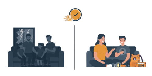 Onze noodpakketten geven je overzicht en duidelijke instructies voor de eerste 72 uur, zodat je rust houdt op het moment dat het telt.